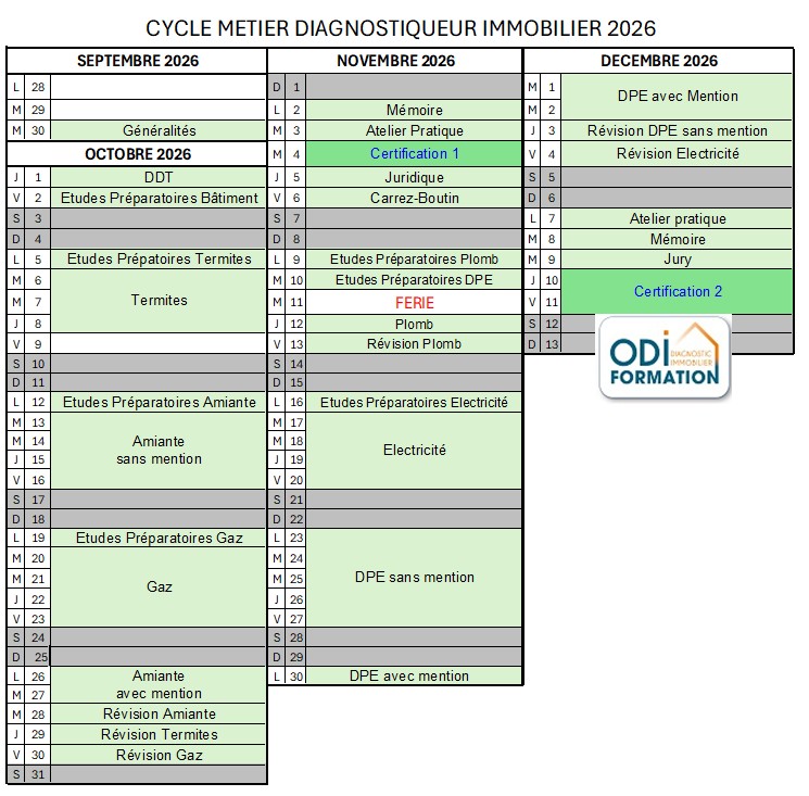 Cycle métier Diagnostiqueur immobilier – Septembre à Décembre 2026